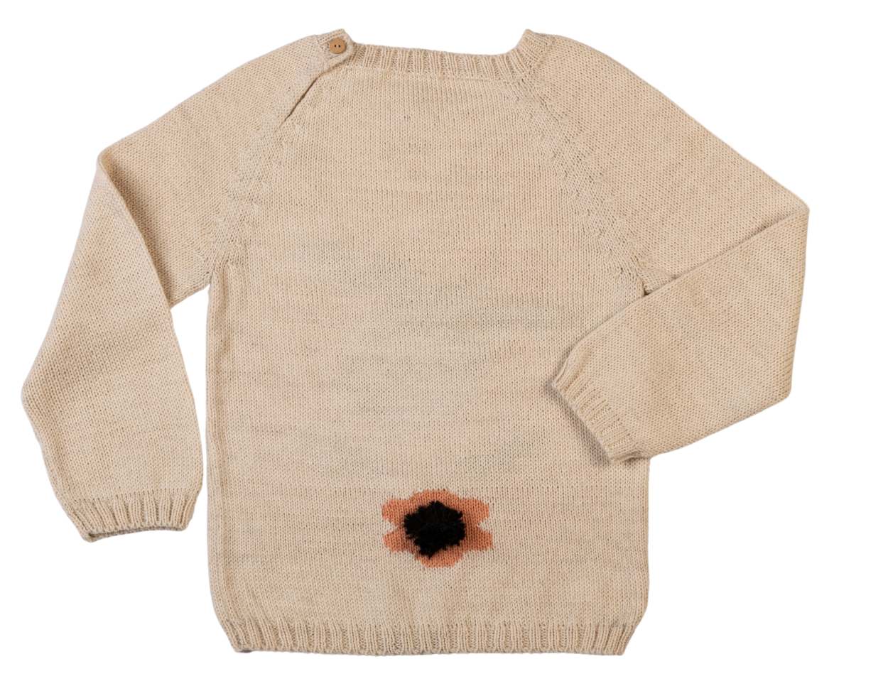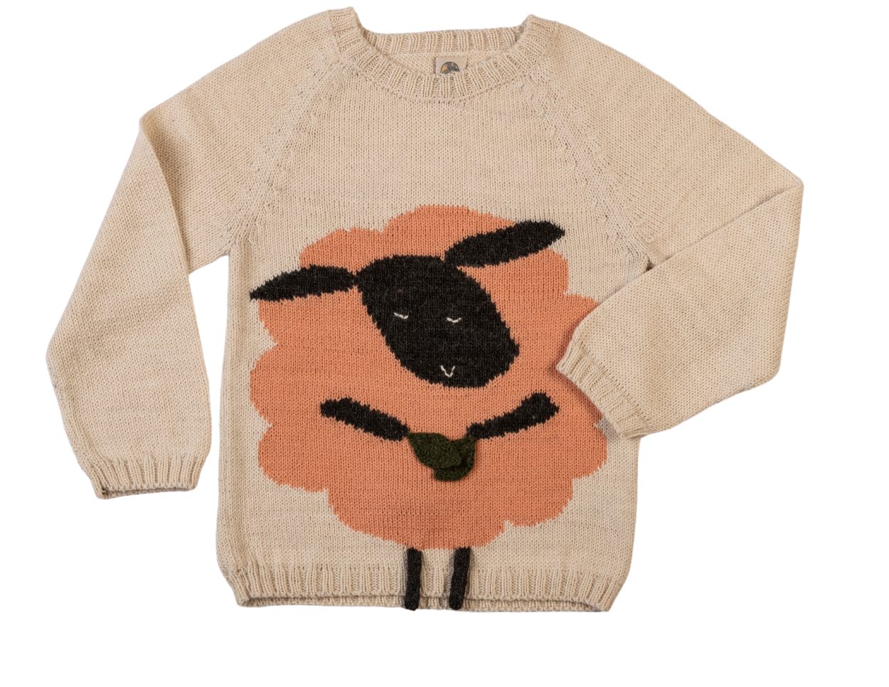 Each sweater features adorable little lamb designs on the front and back — inspired by the playful lambs that roam the Bolivian highlands. With tiny tails and gentle details, these designs capture the innocence and joy of childhood while bringing a touch of nature’s charm to every outfit.