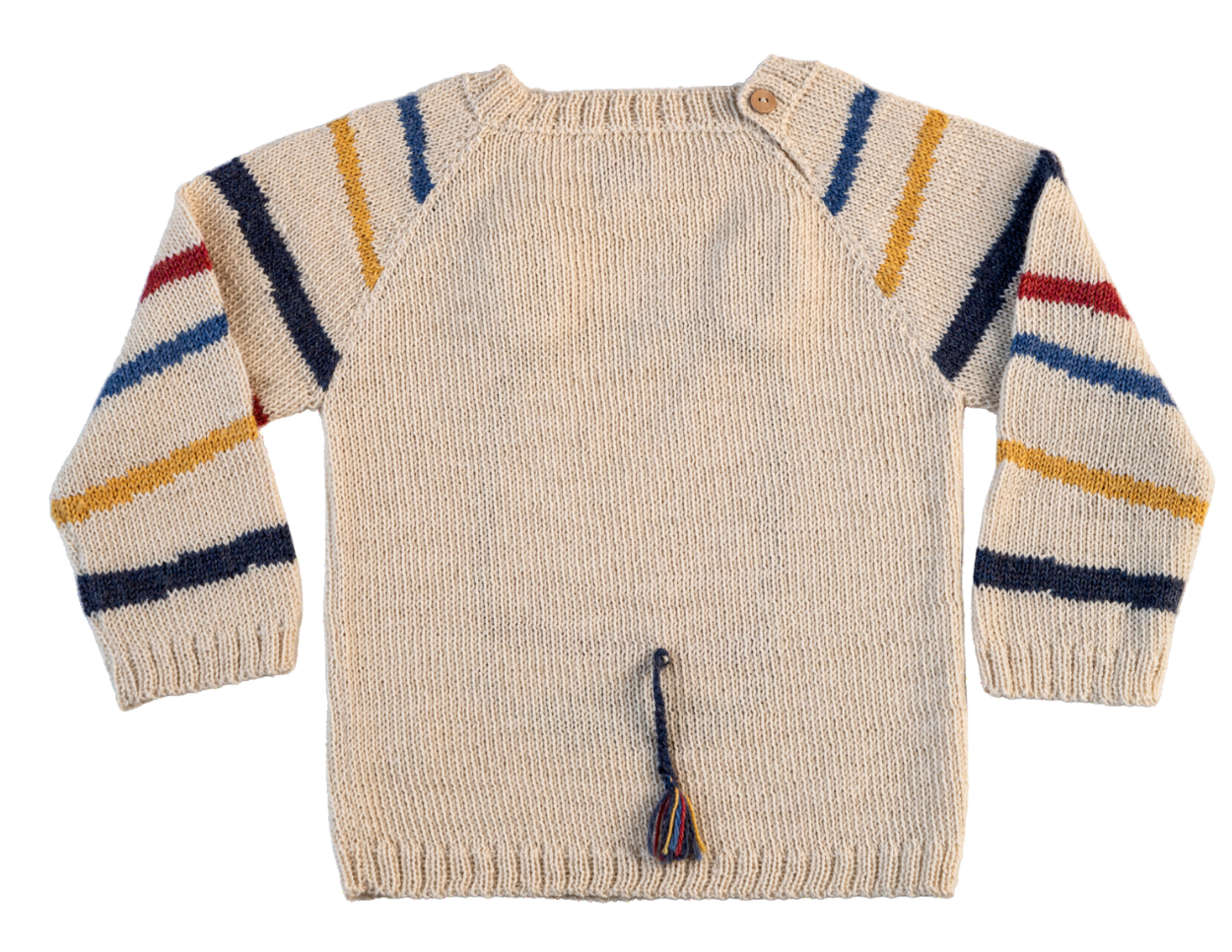 Each sweater features adorable little lamb designs on the front and back — inspired by the playful lambs that roam the Bolivian highlands. With tiny tails and gentle details, these designs capture the innocence and joy of childhood while bringing a touch of nature’s charm to every outfit.