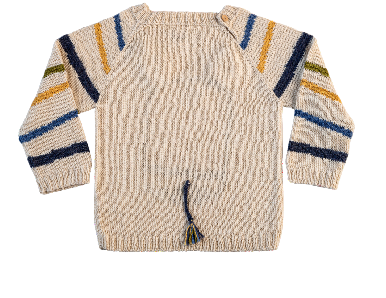 Each sweater features adorable little lamb designs on the front and back — inspired by the playful lambs that roam the Bolivian highlands. With tiny tails and gentle details, these designs capture the innocence and joy of childhood while bringing a touch of nature’s charm to every outfit.
