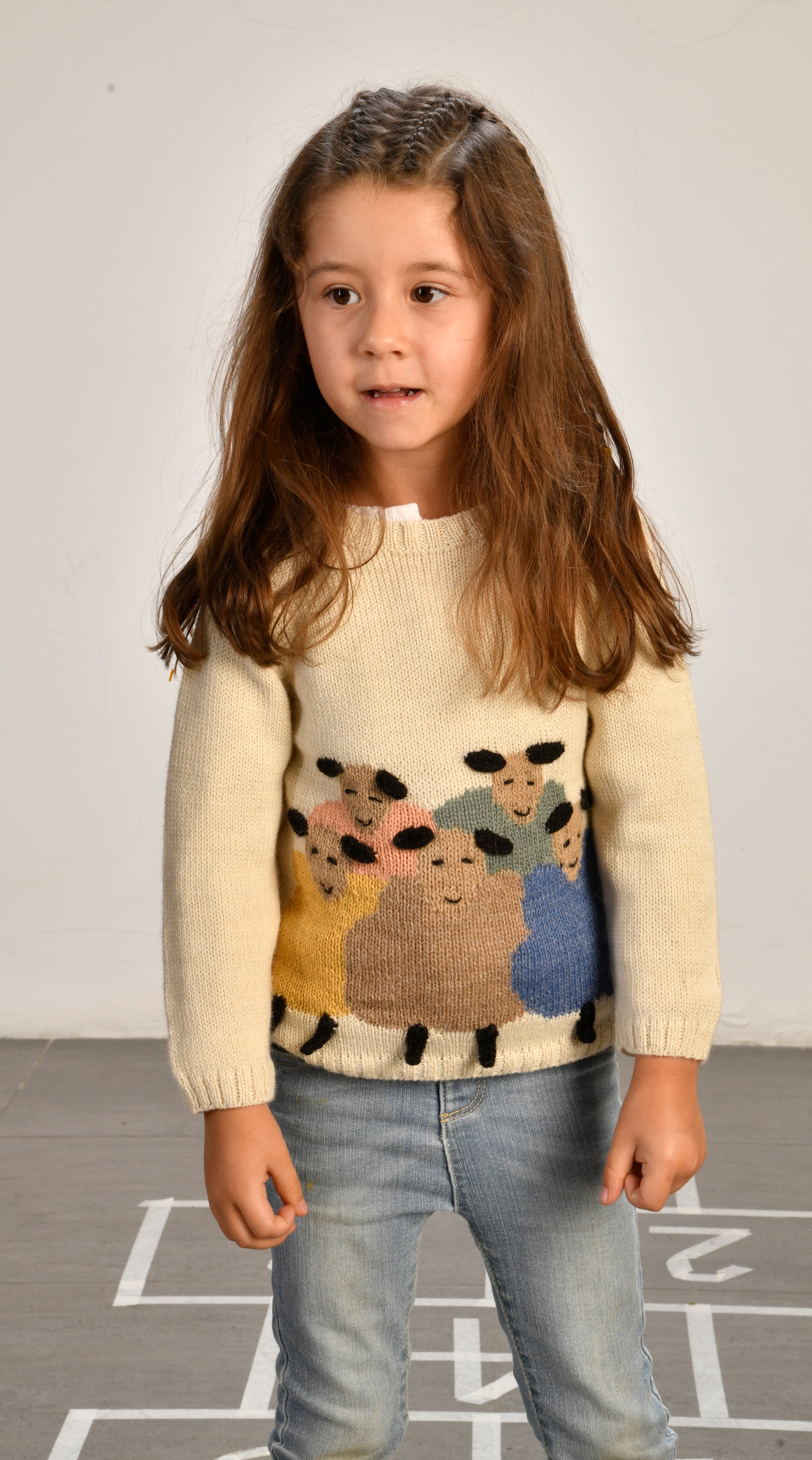 Each sweater features adorable little lamb designs on the front and back — inspired by the playful lambs that roam the Bolivian highlands. With tiny tails and gentle details, these designs capture the innocence and joy of childhood while bringing a touch of nature’s charm to every outfit.